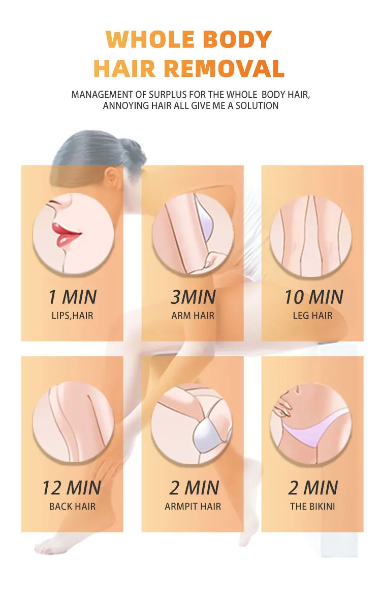 Hair removal parts:nose,ear, armpit, beard, bikini, chest hair, leg hair, arm, hand hair, and the whole body.