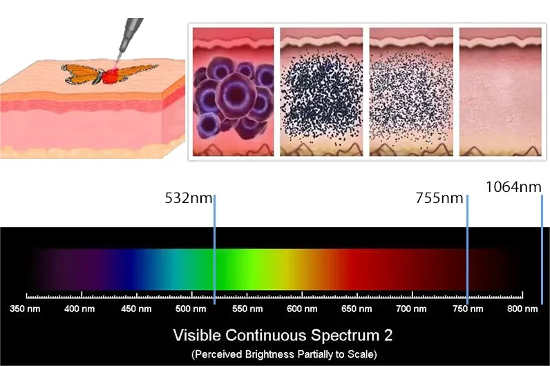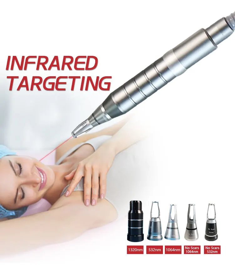 532nm laser head, suitable for red or tan tattoos, eyebrow tattoos, lip liner, and eyeliner. It can effectively dilute red or tan birthmarks and various shallow spots.