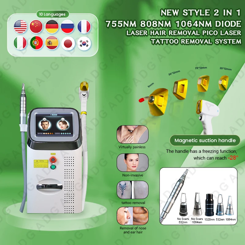 2024 Multifunction 2-in-1 Super Efficient Adjustable Spot Painless Hair Removal Pico Laser Tattoo Pigment Diode Laser Machine