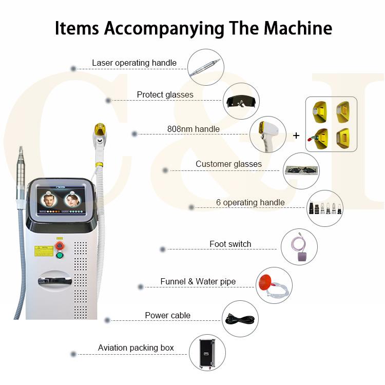 Diode Laser 808nmWith Germany Imported Diode Laser; Half Treatment Time Perform more treatment sessions in less time, allowing you to quickly treat larger areas,while offering your patients the fastest and more effective hair removal feelings.Diode Laser 1064nm1064nm wavelength hair removal treatment will be safer especially for dark skin, skin rejuvenation. performance well, and strong power cooling function, treatment comfortable and safe.