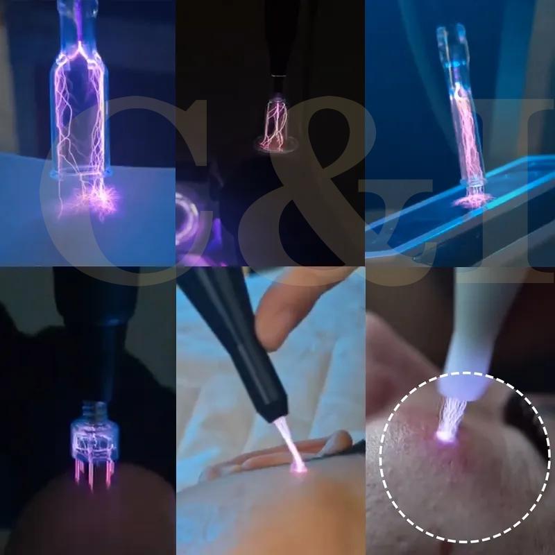 Coolplasmo Cool Plasma Beauty Device. Cold plasma beauty device can be called a bright pearl in the field of beauty technology, it cleverly integrates cold plasma and patented thermal plasma technology is a versatile and powerful professional device in a precision system.The whole device consists of two handles (hand tools) with a variety of interchangeable accessory probes (tips), sets flexible to match your diverse skin care needs. The cold plasma handle uses a unique ionization technology that uses nitrogen or argon as working gases for plasma generation to produce cold plasma with different characteristics.