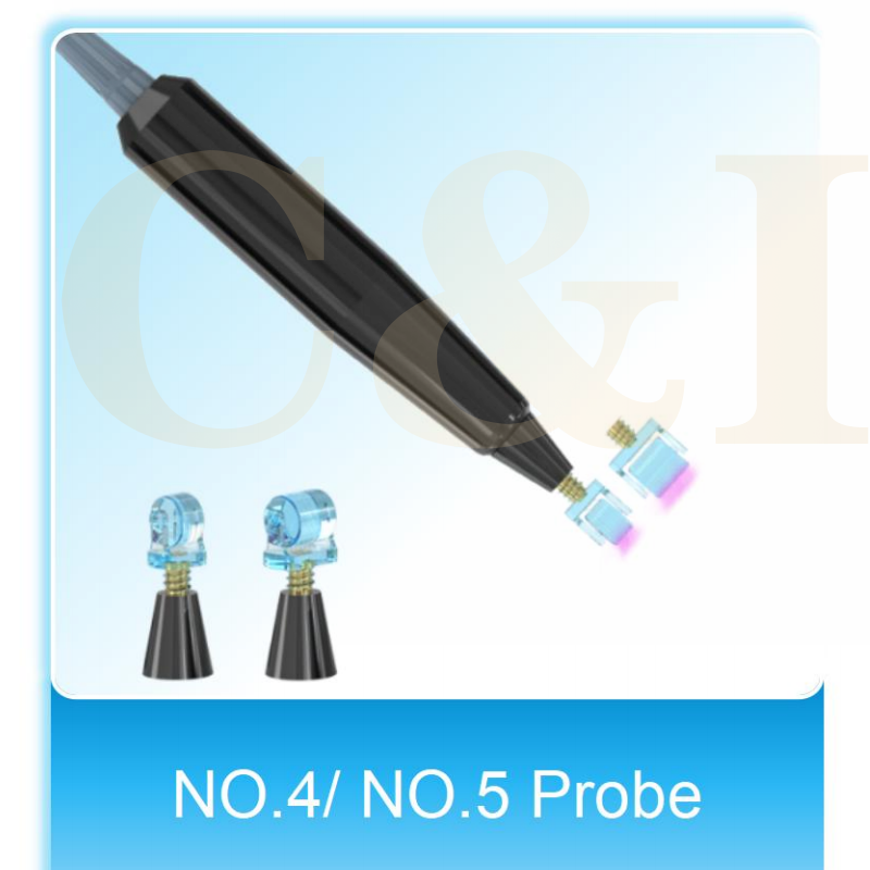 No. 9 probe (looper) - suitable for superficial/oblique areas (e.g., periorbital area and benign lesions therapy). .10 gauge probe (straight tip) - suitable for deep/vertical lesions (e.g., keloids, common in the treatment of lesions Skin blemishes, aging issues such as fine lines, wrinkles, scars, fine lines, etc.).