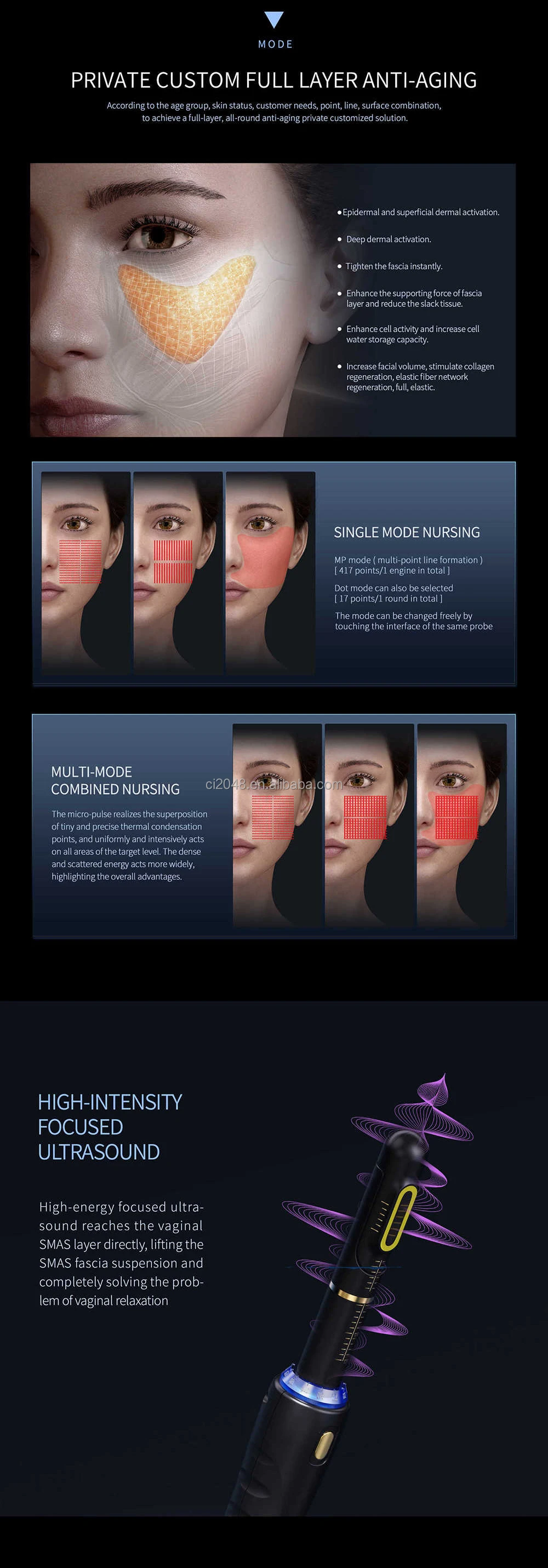 1.Ultrasound Energy: The device emits high-frequency sound waves that penetrate the skin without damaging the surface.
