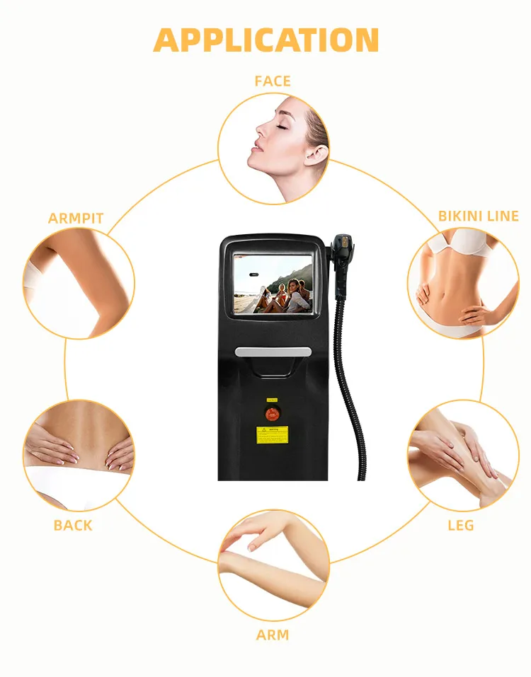 1064nm is suitable for dark skin.The 1064nm also offers the deepest penetration of the hair follicle. so that it targets the hair in areas such as the scalp,armpits and pubic areas.
