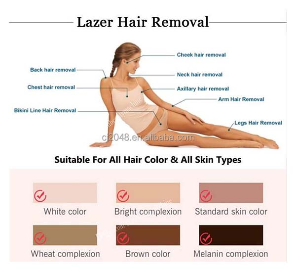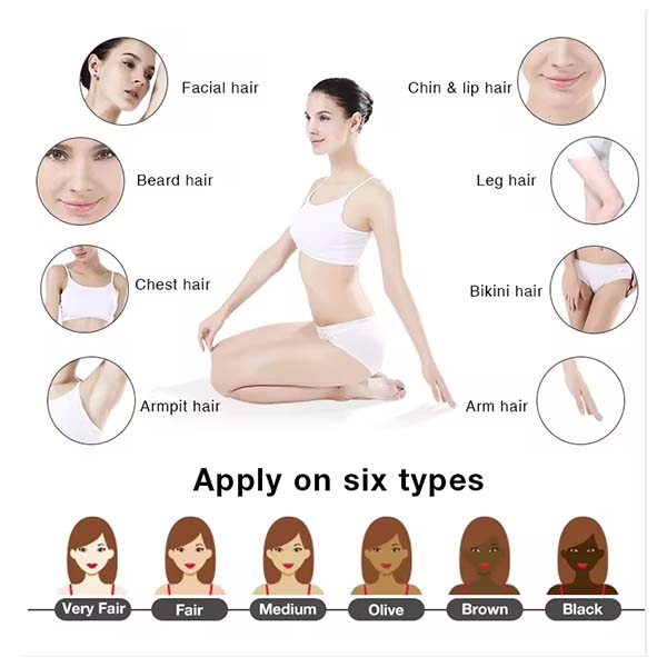 1. Permanent remove the unwanted hair of all the parts of the body, such as face, armpit, back,legs and bikini line, etc, and removal all kinds of depth hair.