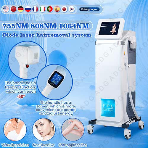 Handle with screen, high-power ice titanium 3 wavelength diode laser hair removal 808 diode laser hair removal machine
