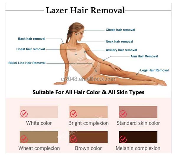 Suitable for hairs of various parts of the body, such as the hairline of the face, lip hair, beard and body hair, chest hair, limb hair, bikini hair, etc. surrounding tissues.