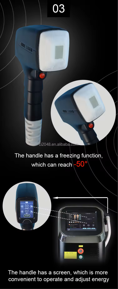 Newly upgraded triple cooling system, using TEC cooling system for launch window sapphire, which can cool down to -28°C, so you can use the machine all day long, which makes the treatment comfortable all the time.