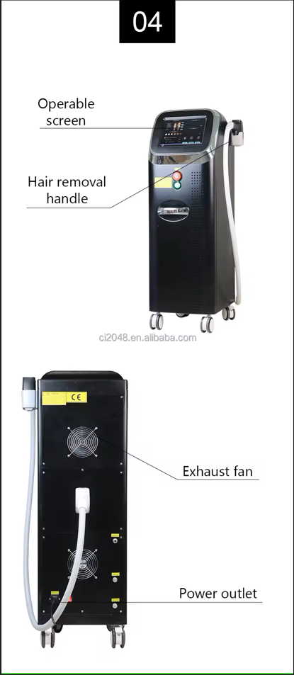 High power handle with screen Ice Titanium 3 wavelength diode laser skin rejuvenation and hair removal beauty machine