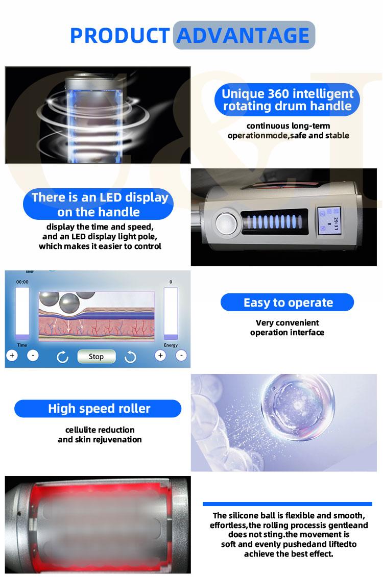 Inner ball massage with innovative micro-vibration compression technology. This technology can speed up the metabolism of the skin, improve the internal storage of the skin, and promote the vitality of the skin to achieve the effects of slimming and firming.