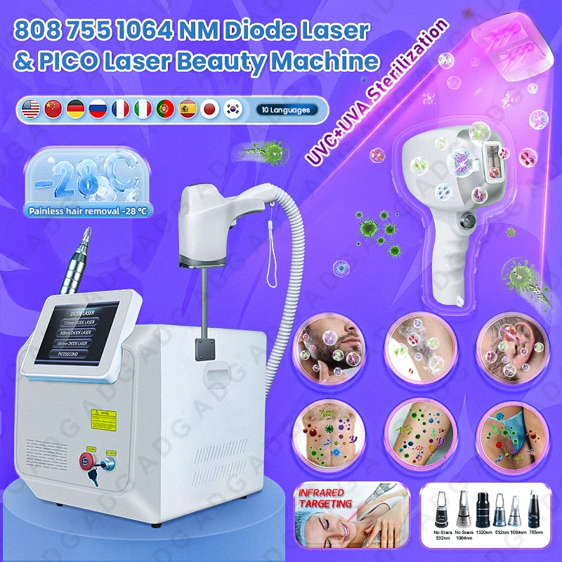 Multifunctional 3-Wavelength 2-in-1 Picosecond Laser Tattoo and Diode Hair Removal Laser Skin Rejuvenation Machine