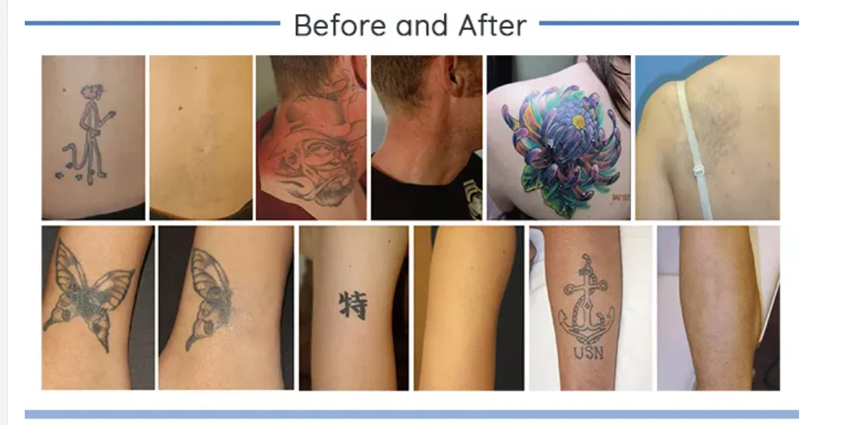 1. Remove tattoo, including red, brown, blue and black.