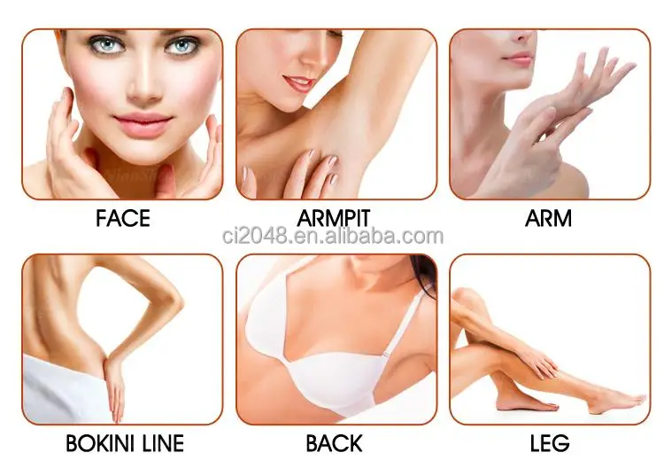 armpit, beard, bikini, chest hair, leg hair, arm, hand hair, and the whole body.