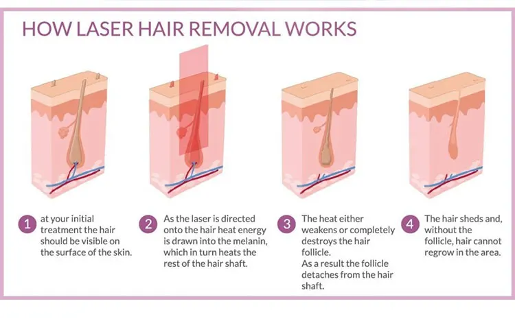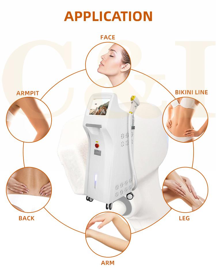 755nm is suitable for fair-skinned people,the 755nm wavelength targets the bulge of the hair follicle and is especially effective for superficially embedded hair.