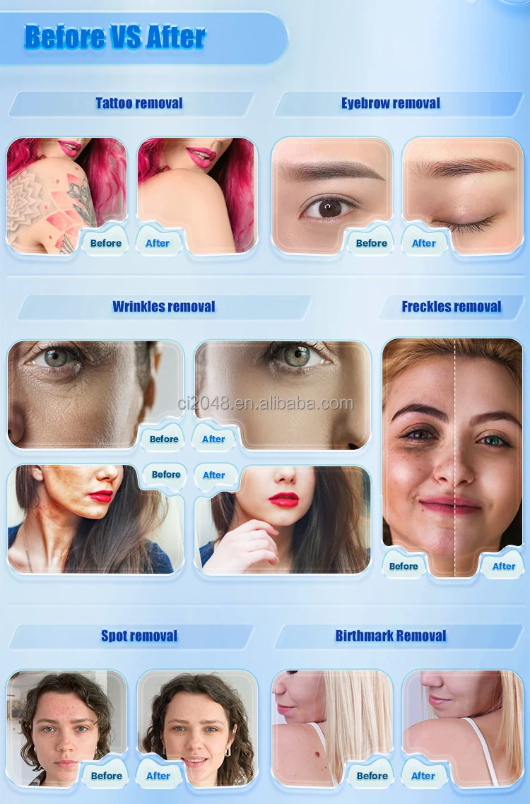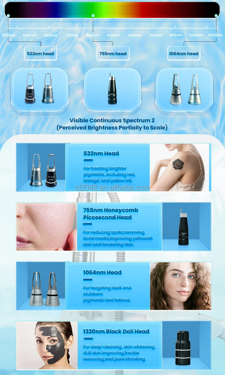 1064nm, 532nm, 755nm, 1320nm, No scars 1064nm, No scars 532nm.