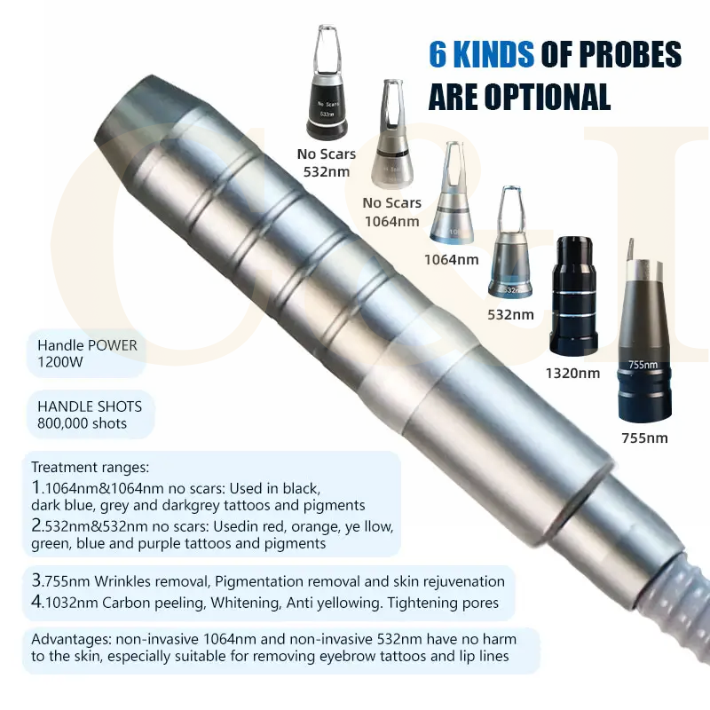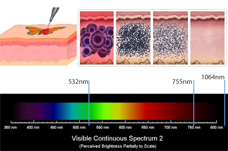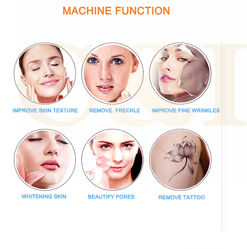 3.1064nm Wavelength: Remove black and dark blue tattoo pigments, such as tattoos, eyebrows, dark color around the eyes, freckle, age spot…….