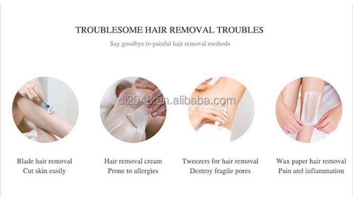 5. Removal Area:Nose, ear, armpit, beard, bikini, chest hair, leg hair, arm hair, hand hair, and the whole body.