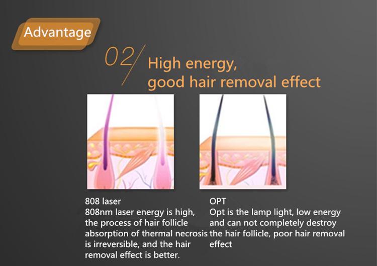 2. High energy: no pigmentation, excellent treatment result can be expected at the first treatment and suitable to all types of hair
