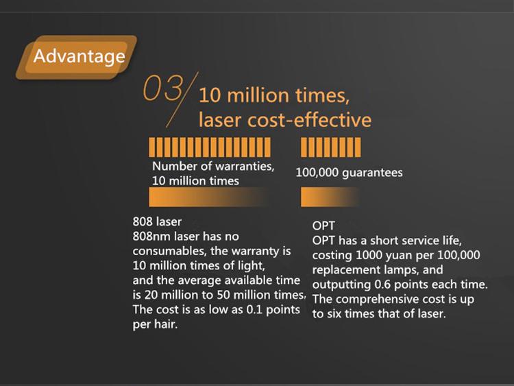 3. Long laser width: Effective for the hair follicles produce heat accumulation, Permanent hair removal.