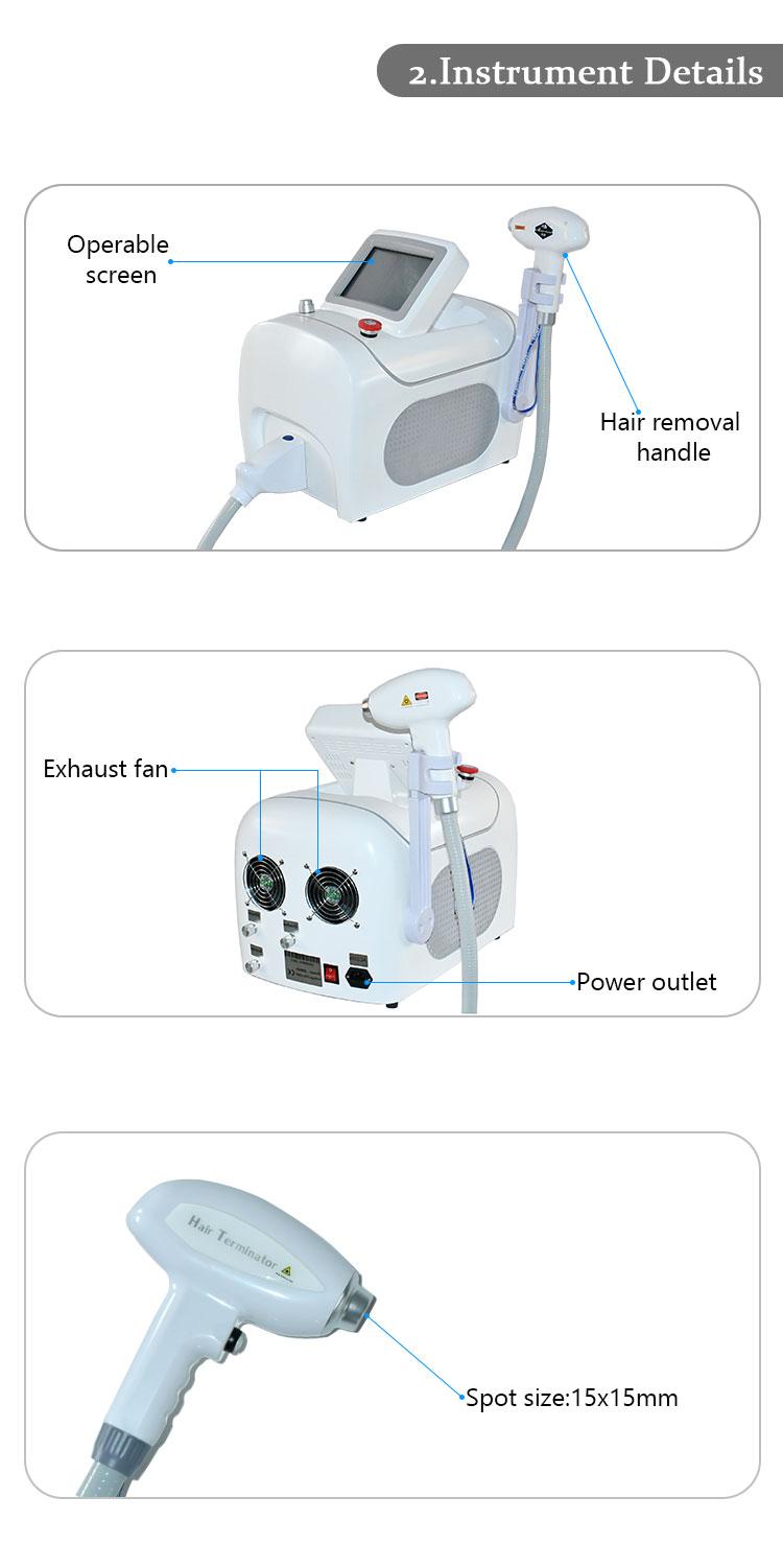6. Quick: Squared big spot size: 15*15mm, 20*25mm,25*31mm,could prompt the treatment speed, treatment speed and efficiency. Reduce treatment time for original 1/5 laser hair removal machine price