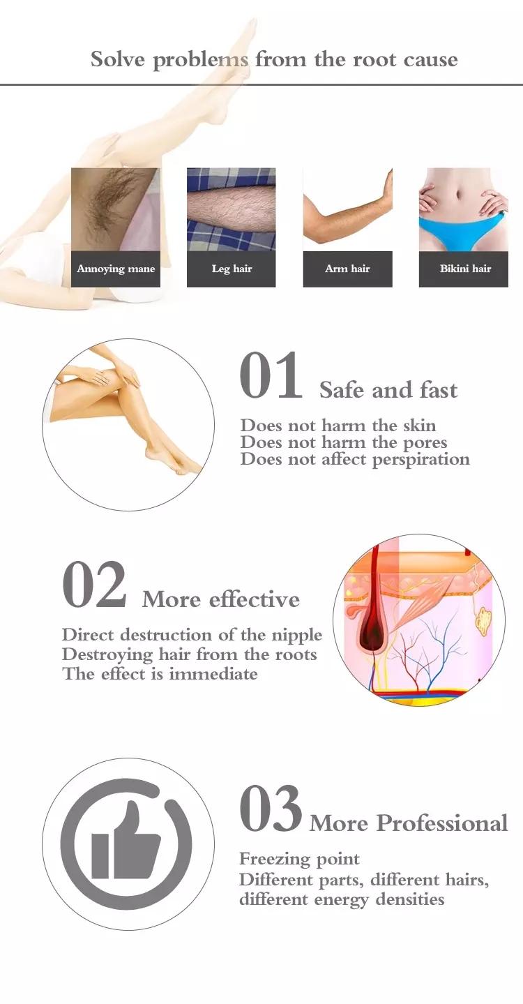 4. Safety: Almost no skin scattering, no harm to the skin and sweat glands, no scar, no any side-effect