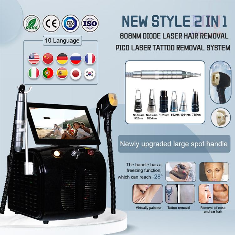 New Portable Multifunctional 2-in-1 Pico Laser Tattoo Removal and Diode Laser Hair Removal Machine