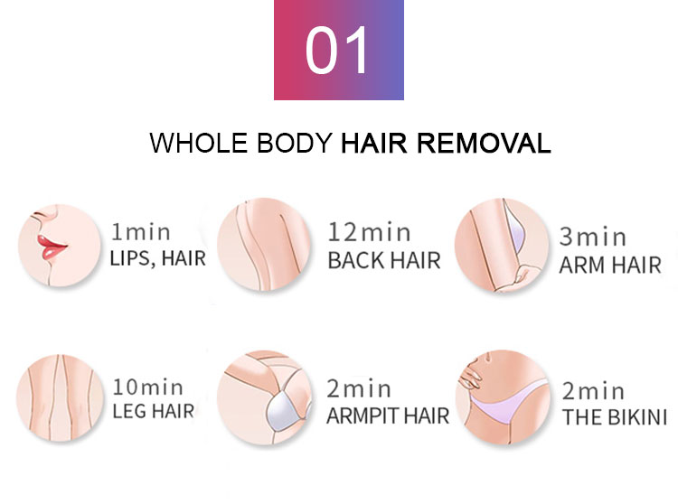 1. Permanent hair removal in different areas: Lip hair,beard, chest hair, armpit hair, back hair,arm hair, leg hair and
